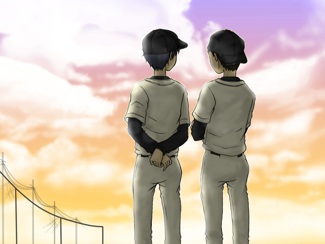 2年生くらいの秋の終わり、夕焼けに染まるグラウンドで。