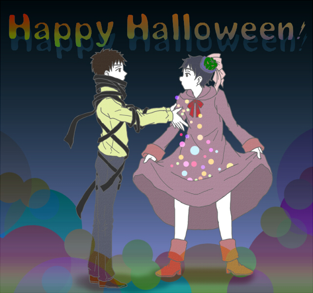 沖→魔法使い・阿部→ミイラ男。けっして女装ではありません……、生足だけど。